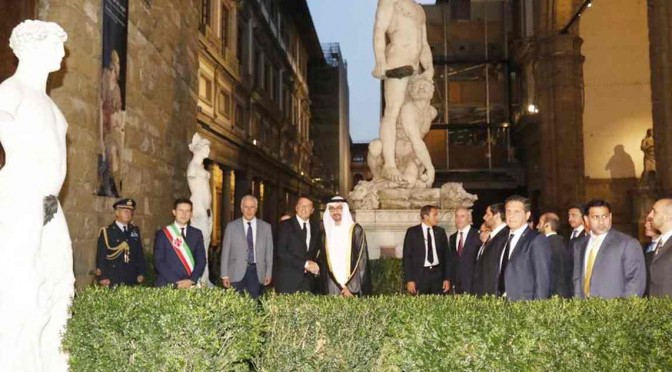 Renzi ha fatto onore alla sua intelligenza. Ieri, durante il vertice bilaterale a Firenze con lo sceicco Mohammed Bin Zayed Al Nahyan, principe ereditario degli Emirati Arabi, per non turbare quella che Palazzo Chigi ha definito ‘sensibilità’ dell’illustre ospite, ha fatto coprire, con un paravento – un’oscena carta da parati decorata con gigli – il nudo dell’artista Jeff Koons.