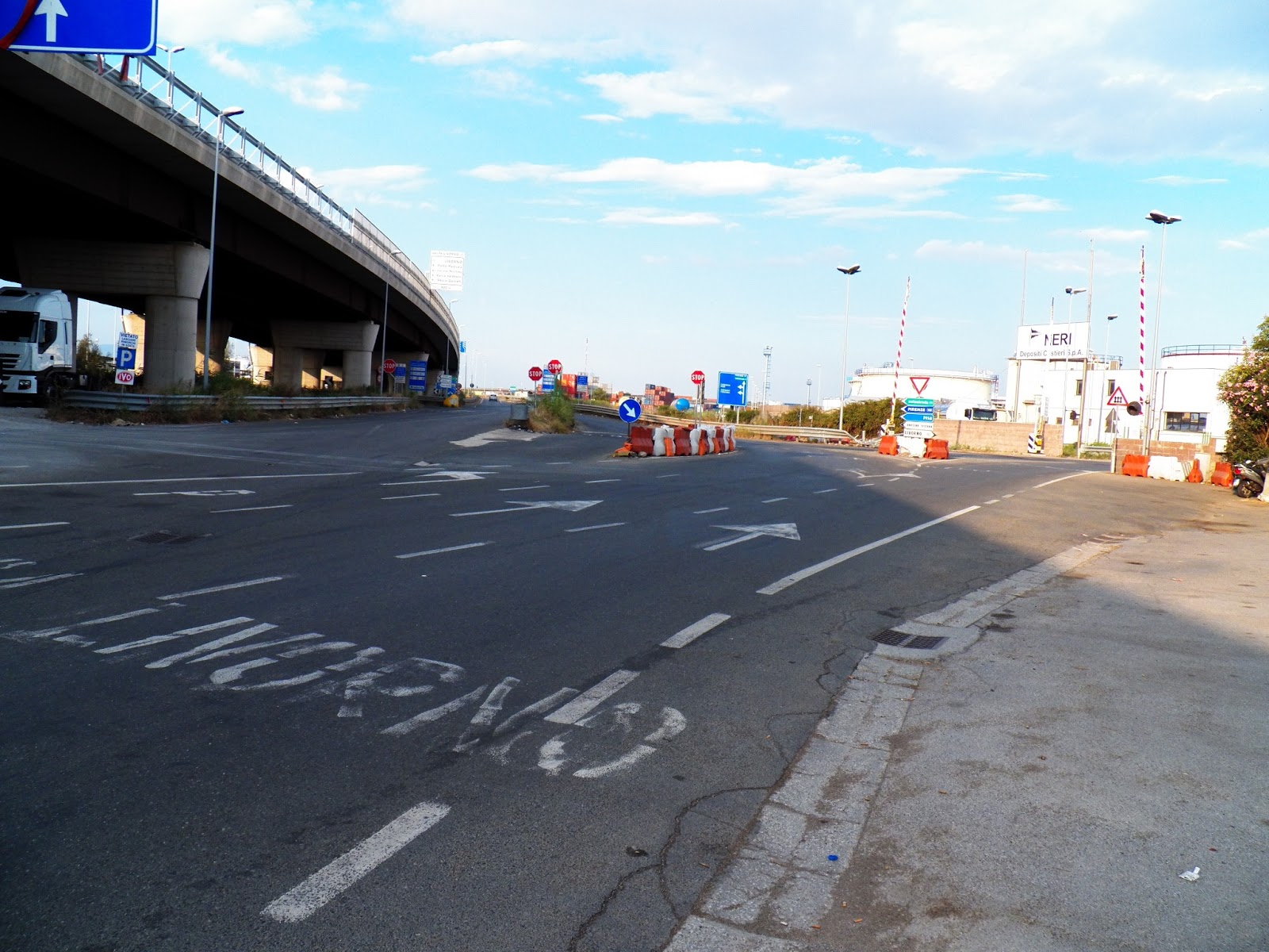 Voragine in via Quaglierini ancora lì , con la provincia di Firenze che dovrebbe risistemare il tratto finale della superstrada FI PI LI e invece e’ totalmente inadempiente con gravissimi danni per il traffici del porto e per la circolazione delle auto nei fine settimana con code apocalittiche quando rientrano i vacanzieri o meglio i pendolari del fine settimana che si uniscono alle auto dei passeggeri sbarcati dai traghetti. Un caos indegno, con strade che rappresentano bene la situazione di ” estremo degrado istituzionale e politico “, perche’ queste immagini testimoniano come e’ male amministrata Livorno ed in generale la Toscana. Si consente agli autisti dei Tir di devastare le strade e la segnaletica. In via Jacoponi ci vorrebbero telecamere , presenza di polizia municipale , Finanza e polizia di Stato, perche’ siamo in una giungla , una situazione di completa anarchia, dove i Tir parcheggiano negli svincoli ed i camionisti fanno quello che vogliono vedi manovre da codice penale e parcheggio nel mezzo di svincoli stradali. Ovviamente nessun agente controllo e sanziona. Cartellonistica distrutta ed inesistente, svincoli occupati da tir in parcheggio, buche enormi sulle strade, voragine sul tratto finale della Fi Pi Li da oltre non ripianata, traffico nei giorni di punta impazzito, danni economici al porto di Livorno ed alla logistica, danni al turismo del Litorale Pisano, ci sarebbero tutte le motivazioni perche’ i sindaci di Pisa Livorno la stessa Autorita’ Portuale, intervenissero in tutte le sedi , per imporre alla provincia di Firenze, il ripristino del tratto finale della superstrada Fi Pi Li