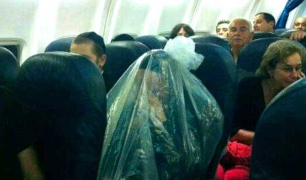 Come l’aereo era pronto a decollare, gli haredi, distinguibili dai loro abiti neri e in molti casi cappelli a tesa larga neri, rimanevano in piedi nei corridoi piuttosto che sedersi, ritardando la partenza.