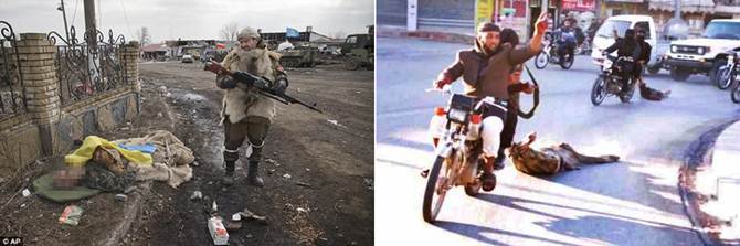 Da una parte abbiamo un soldato russo, che passa, e osserva con la pietà nello sguardo, il corpo esanime di un soldato ucraino coperto dalla propria bandiera, nella città di Debaltsevo. Dall’altra, un fanatico islamico, in Iraq, strazia quel che resta di un nemico. E’ nei momenti più bui, che si vede la differenza tra due civilizzazioni. O tra una civilizzazione e la barbarie.
