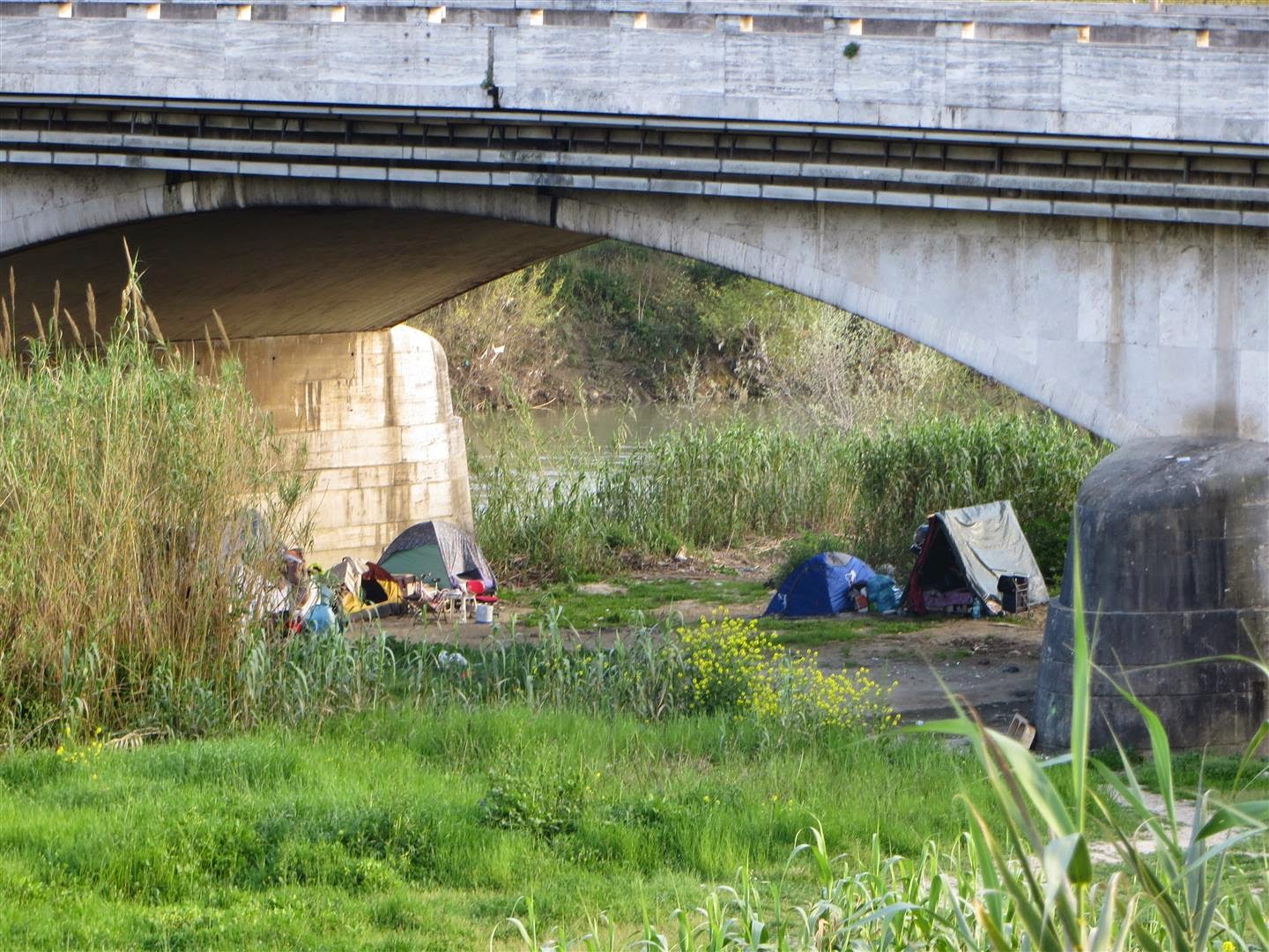 Questo è (dovrebbe essere) un piccolo parco lungo l’argine destro del Tevere (ex biondo) in zona Magliana. E’ ormai ridotto come si vede nelle foto: assediato da accampamenti abusivi di zingari, con le loro discariche di rifiuti – molti tossici – in corrispondenza del Viadotto della Magliana.