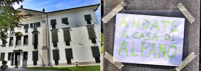 E allora, protesta ‘in stile’, con drappi neri alle finestre, la scritta “andate a casa di Alfano” al campanello, uno striscione. Il conte Francesco Lovaria non vuole che la dimora della sua famiglia sia trasformata in hotel dei profughi. Sedicenti tali.