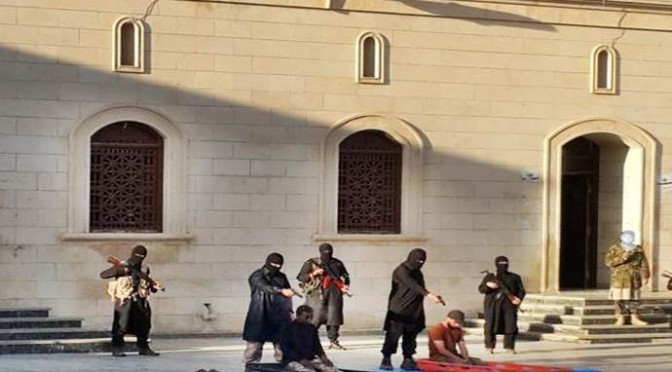 BREAKING NEWS, ESTERI ISIS è in Libia: ‘giustiziati’ 2 ragazzi Maggio 30, 2015 Vox Vox Condividi!La location è ormai la solita: moschea di Derna, capitale del califfato islamico in Libia. Stavolta, le due vittime sono accusate di ‘furto’ ed eliminati con un colpo di pistola alla nuca: Vox Segui Vox