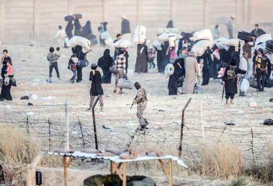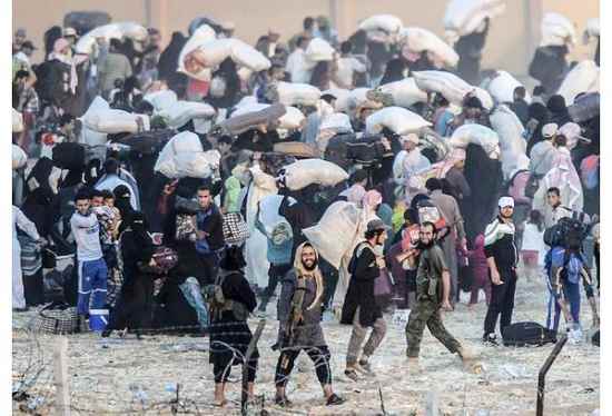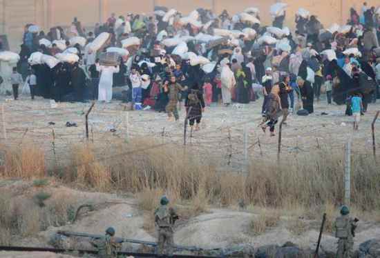 Questo è il confine tra Siria e Turchia, presso Tal Abyad. Le foto mostrano i miliziani di ISIS che riconducono indietro la popolazione in fuga: ecco, questi sono veri profughi, li distingue da quelli che arrivano in Italia, il fatto che non sono giovani uomini soli.