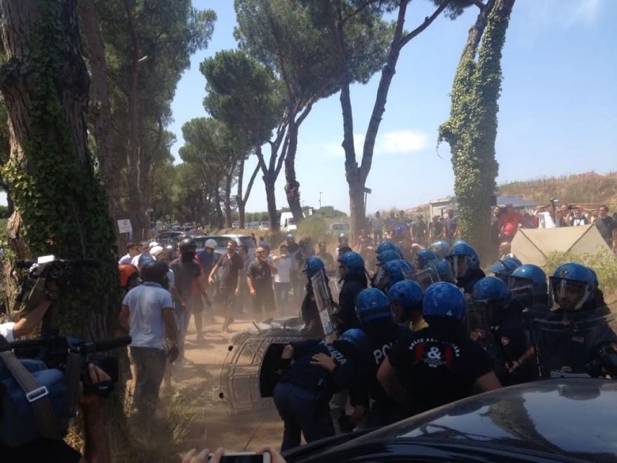 Scontri sulla Cassia a Roma, al Casale San Nicola, durante le operazioni di trasferimento di circa un centinaio di clandestini nel centro di accoglienza allestito da Marino e dal prefetto Gabrielli nella scuola Socrate.