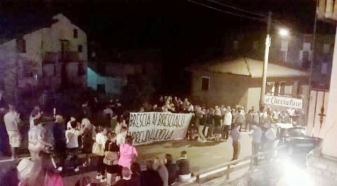 Oltre metà dei 500 abitanti erano in piazza, ieri sera, a manifestare davanti l’hotel che ospita, a spese nostre, 19 immigrati. E’ il solito proprietario fallito che annusa il business e partecipa al bando per l’accoglienza pubblicato dalla solita prefettura: in questo caso di Brescia.