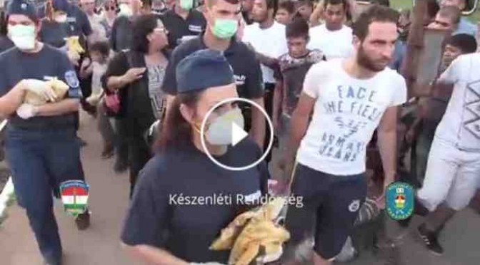 I sedicenti profughi islamici vestiti Armani – in realtà le classi ricche di Pakistan e Siria – gettano acqua e cibo offerti a Budapest: