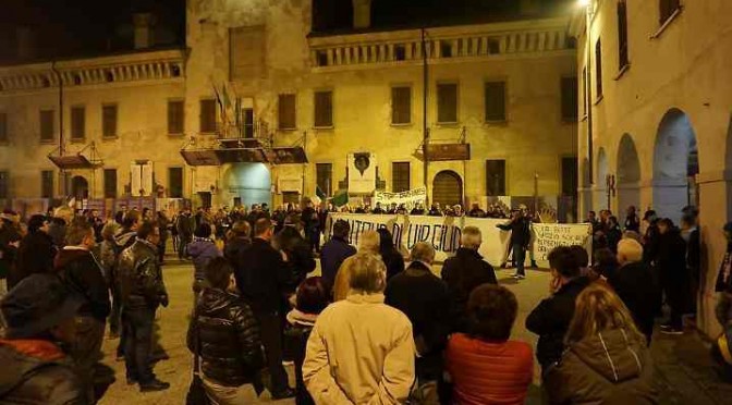 RIVAROLO MANTOVANO – Oltre 150 rivarolesi hanno preso parte giovedì sera in piazza Finzi alla manifestazione organizzata per dire no al business dell’immigrazione. Ad organizzare il tutto i comitati ‘Mantova ai virgiliani’ e ‘Casalasco identitario’.