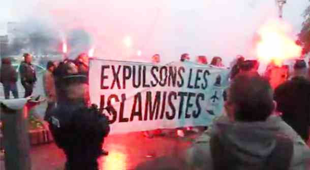 I manifestanti, armati di razzi e con striscioni: “Fuori gli islamisti” si sono fatti largo tra la folla di una delle manifestazioni per polli da batteria (i soliti ‘siamo tutti umani’) e ha iniziato a gridare “fuori i musulmani”.