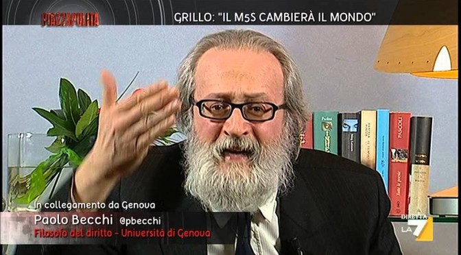 Becchi ha provveduto alla cancellazione dell’iscrizione “lo scorso 31 dicembre”. Per Becchi, uno che non accetta compromessi, il M5s si è trasformato in un “partito ibrido che da un lato acchiappa chi ancora crede negli ideali di rottura del vecchio Movimento e dall’altro si avvicina alla logica partitica”. Alla luce di questo ragionamento l’intervento del professore di diritto su ‘Mondo Operaio’ di febbraio si intitolerà: “Dal Movimento liquido di Grillo al partito ibrido di Casaleggio”.