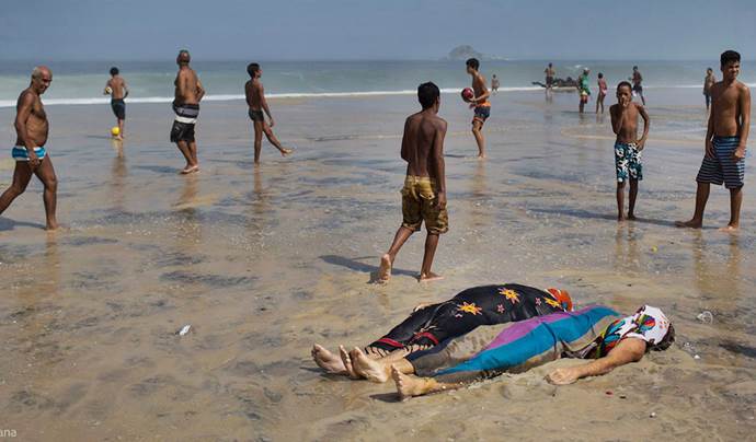La foto di persone che giocano a calcio vicino a due cadaveri di turisti è emersa durante il fine settimana, in Brasile.