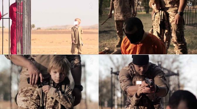 Analizzando il video, soprattutto la parte delle esecuzioni, si nota come i bambini costretti a giustiziare i prigionieri siano di razza bianca. Nemmeno ‘mista’, quindi non figli di islamici e convertite.