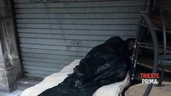 Giovanni Franchi, titolare del Gran Bar Italia di piazza Goldoni, si sfoga così su Facebook questa mattina. Un giovane immigrato (probabilmente un ex profugo) che ha passato la notte davanti al suo locale sfruttando alcuni tavolini del bar per sollevarsi da terra, su cui ha poi disposto dei cartoni per un migliore isolamento termico, riscaldato da una coperta che sembra più un sacco dell’immondizia.