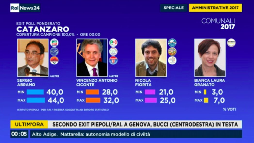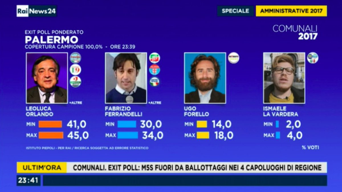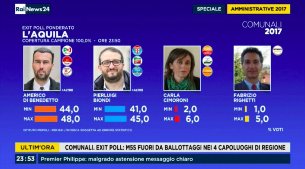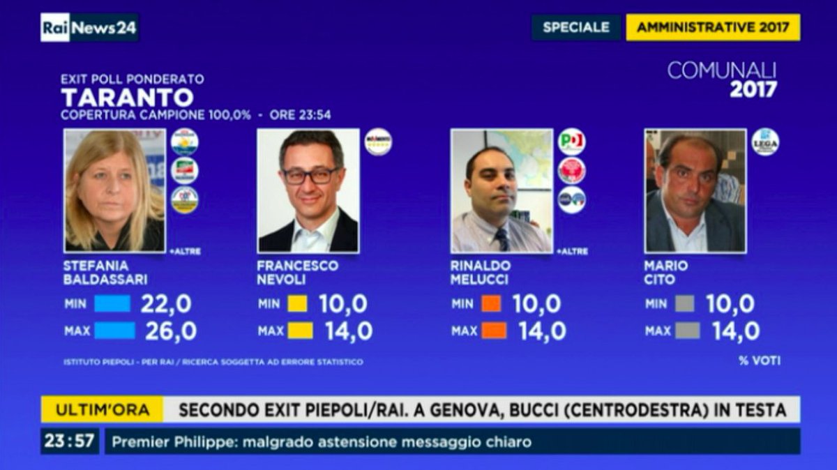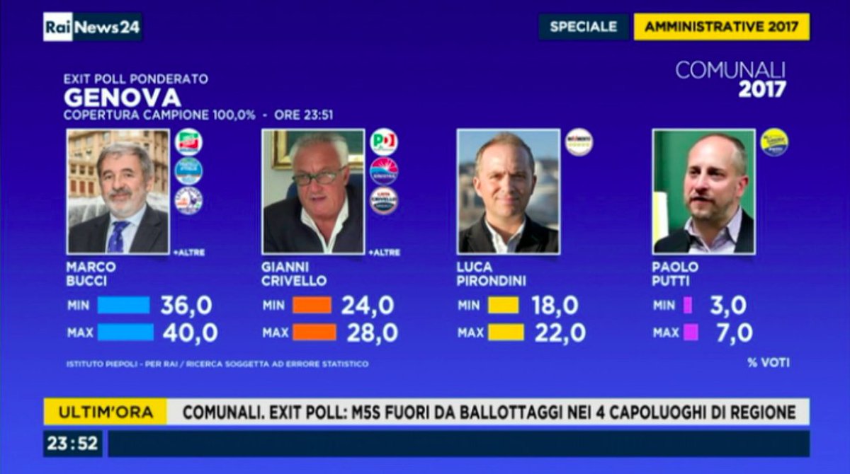 Secondo Nicola Piepoli per Porta a Porta a Padova vanno alballottaggio Massimo Bitonci (Lega) e Sergio Giordani (Pd).