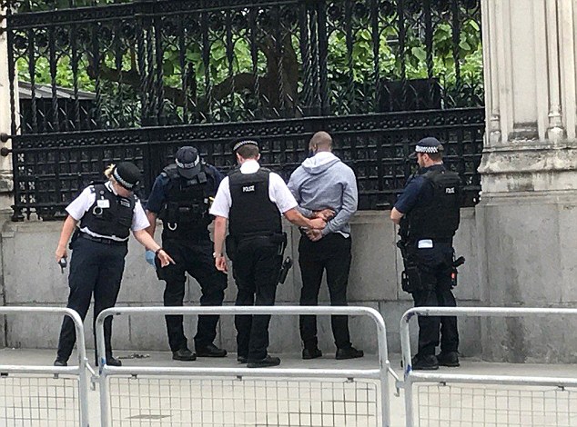 Un nero barbuto armato è stato bloccato a Londra, col teaser, davanti al parlamento.