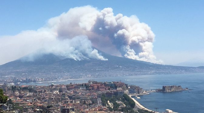 Da alcune ore non è più possibile accedere al Vesuvio. È troppo pericoloso. Il vulcano brucia da una settimana senza tregua. Le lingue di fuoco non sono lava ma fiamme divampate o appiccate in più punti. L’incendio si estende per almeno due chilometri. Alcune famiglie sono state fatte spostare dalle loro abitazioni e altre, in contrada San Vito ad Ercolano, si sono allontanate spontaneamente. Con molto ritardo sono arrivati i rinforzi aerei da Roma.