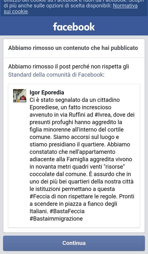 Abbiamo rimosso facebook perché non rispetta gli standard del Popolo Italiano (quello VERO!)