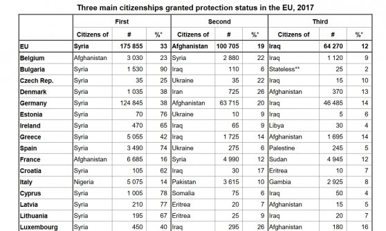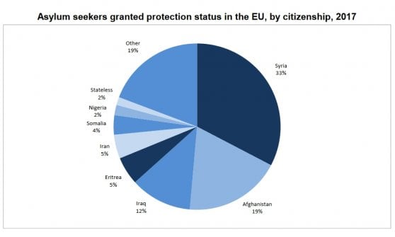 La percentuale di siriani sul totale dell’intera unione raggiunge il 33%, corrispondente a 175800 persone. Il secondo Paese maggiormente rappresentato è l’Afghanistan, con il 19% e il terzo l’Iraq con il 12%. Più o meno tutti Paesi con una guerra.