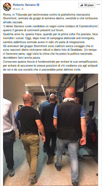 Non si comprende cosa ci sarebbe di reato nello scrivere: “L’ebreo Saviano vuole un sindaco negro (in realtà scrissero nero ndr..)”. Lui è ebreo, e disse di volere un sindaco nero. Magari scrivere “l’ebreo Saviano” è un tantino volgare per i palati fini, ma non può e non deve essere reato scriverlo. Altrimenti viviamo in uno Stato di Polizia. E abbiamo scritto lo stesso quando arrestarono qualche islamico per cose scritte.