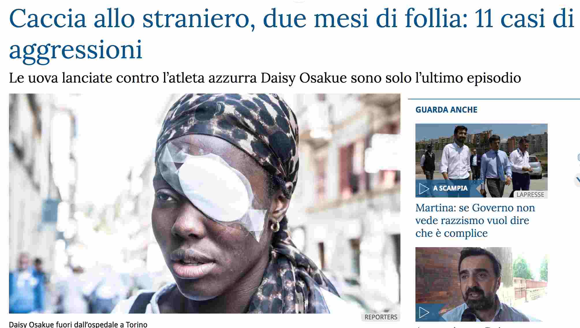 Questo il divertente articolo di oggi del giornale debenedettiano La Stampa sull’emergenza ‘razzismo’: