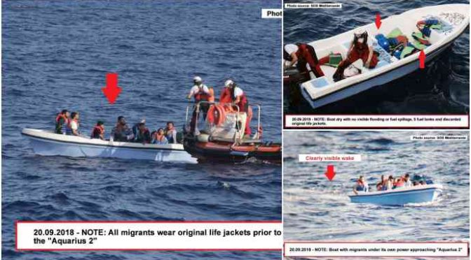 Come potete notare l’imbarcazione non è sovraffolata, ha un motore funzionante con il quale si è avvicinata alla Aquarius in modo autonomo e i passeggeri hanno tutti il proprio giubbotto di salvataggio.