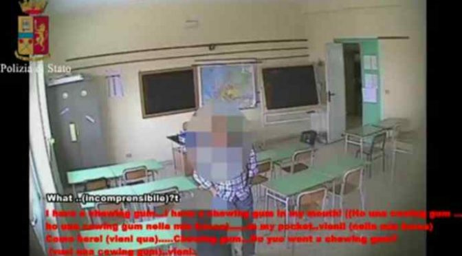 ‘You are my wife, do you remember?’. ‘Tu sei mia moglie, ti ricordi?’. Così il bidello gambiano di 53 anni cerca di fare pressioni psicologiche su una ragazzina di 16 anni, che frequenta la scuola in cui lavora per convincerla ad avere rapporti sessuali con lui. La richiesta pressante, poi sfociata in violenza, è ripresa da una telecamera che la polizia di stato di Ragusa ha messo nell’aula della classa della scuola frequentata dalla minorenne. Lui cerca di convincerla a seguirla anche offrendole una gomma da masticare.