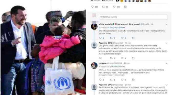 Matteo Salvini ha voluto accogliere personalmente i 51 immigrati arrivati oggi all’aeroporto di Pratica di Mare su un aereo della Protezione civile. Arrivano da Sudan, Etiopia, Eritrea, Somalia e Camerun. Secondo altri giornali arrivano dal Niger, e nemmeno in Niger c’è la guerra in Siria. Verranno portati nella comunità “Papa Giovanni XXXIII” di Rimini e … Leggi tutto Salvini accoglie aereo carico di immigrati a Roma: “Ne arriveranno altri”