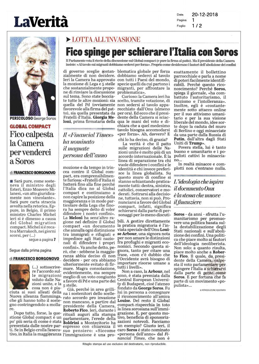A livello globale, ogni anno, la Open Society di Soros spende 1 miliardo di dollari, il cui 10% viene speso in Europa e il 2,5% in Italia. Insomma, il 25% del budget europeo quelli di Soros lo spendono in Italia, per condizionare il dibattito politico, visto che i soldi finiscono a 28 Ong impegnate sul fronte pro-migranti e pro-censura (il 52% del totale). E che sono solo la punta dell’iceberg.
