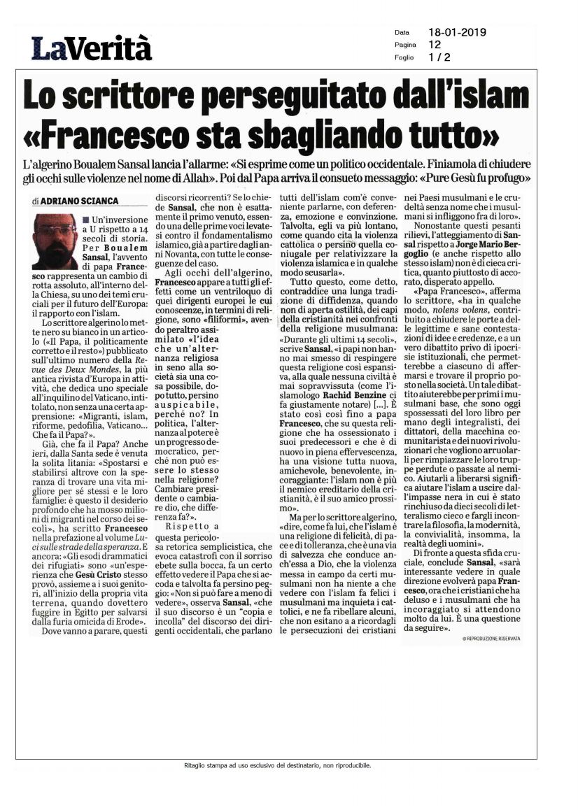 Scrittore perseguitato a Bergoglio: “Basta negare violenze islamiche”