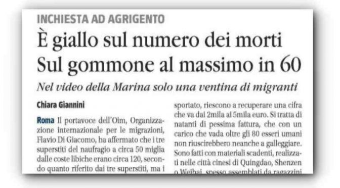 O almeno non c’è mai stata, nelle proporzioni che qualcuno ha tentato, con successo, di imporre all’opinione pubblica. Vox è stato il primo a parlare del video della Marina Militare che smentiva le notizie diffuse dai media: Naufragio da 117 morti, ma Marina Militare: “20 immigrati a bordo” Poi altri hanno ripreso la notizia: Naufragio … Leggi tutto Immigrati, la strage inventata per aprire i porti