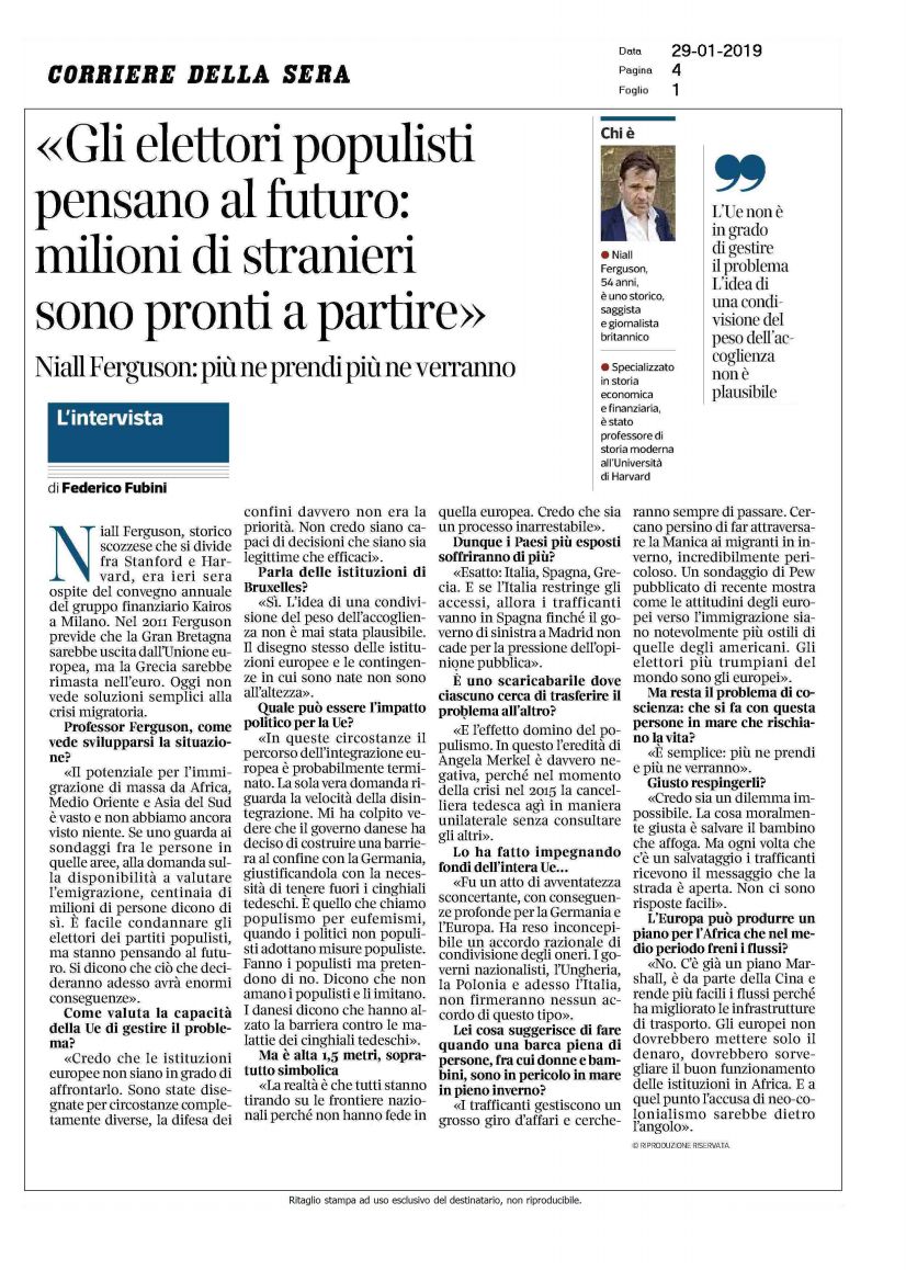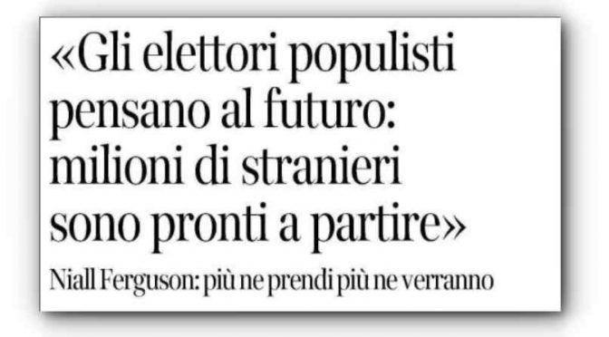 Lo storico Niall Ferguson: “Più si aprono le porte dell’accoglienza, più migranti arriveranno”.