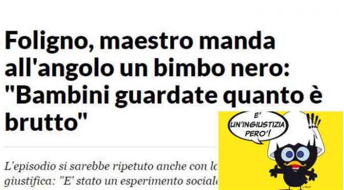 Sarà sospeso dal servizio “in via cautelare” il docente, un supplente, di una scuola elementare del folignate che rivolgendosi a un alunno di colore avrebbe chiesto ai compagni “è vero che è brutto”?.