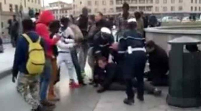 Lì, un gruppo di immigrati ha aggredito due agenti che stavano effettuando un arresto nei confronti di un loro connazionale.