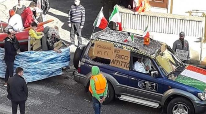 “Vogliamo il wi fi”, “No pago affitto”, poi un barcone e figuranti con la faccia dipinta: questo il carro che ironizza sugli immigrati che ha sfilato ieri tra le strade di Formello, alle porte di Roma, trasformando, secondo la sinistra, la sfilata di Carnevale in uno “spettacolo razzista”. Roba da matti.