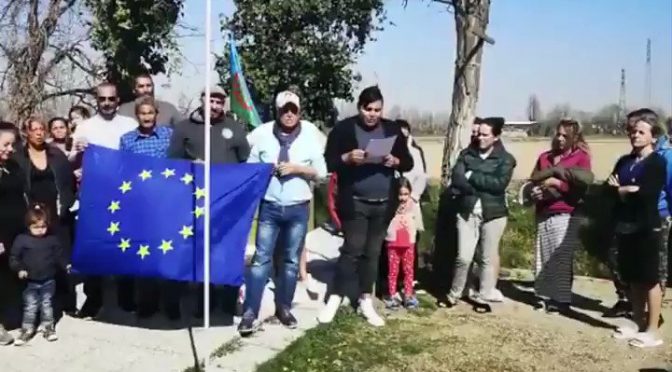 Alla deprimente richiesta del Pd zerbino dell'Unione Europea i rom rispondono con entusiasmo. Ecco la #bandieraeuropea spuntare in tanti campi.