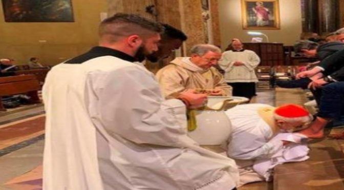 Il cardinale ha compiuto la Lavanda dei piedi a giovani, lavoratori e cosiddetti profughi.