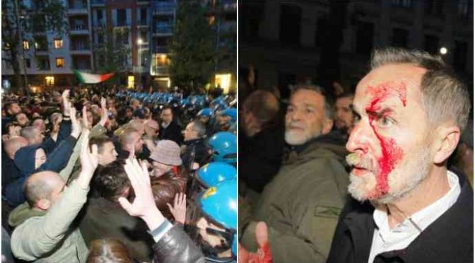 Il manifestante ha riscontrato un “forte trauma cranico”, ha riferito il personale del 118.