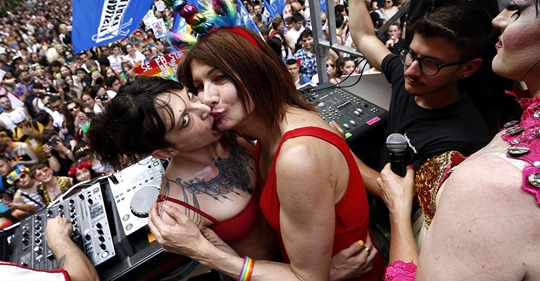 Qui abbiamo una notizia, finalmente niente sesso omo al gay pride ma un sano bacio uomo-donna!