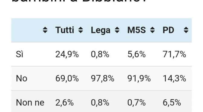 Secondo il 69% degli Italiani la risposta è "no".#22luglio #BibbianoNonMolliamo pic.twitter.com/JpjwOhdH6h— ᴘRᴏF. ɢIᴀNᴍIᴄHᴇLᴇ ᴄAᴜTɪLʟO ® (@Giammo3) July 22, 2019