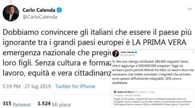 Infatti, la colta sinistra di @CarloCalenda, ha traghettato in Italia 624.748 clandestini dal 2014 al 2017 (facendone affogare 13.457), il 16% dei quali è completamente ANALFABETA, per ammissione dello stesso Calenda. "Intelligente" strategia per alzare la media culturale. 😂 pic.twitter.com/ZbwSNwKUng