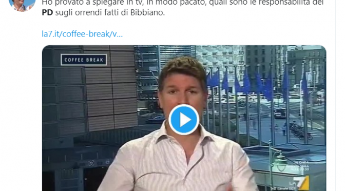 Eccolo infatti scontrarsi con una piddina per lo scandalo di Bibbiano: