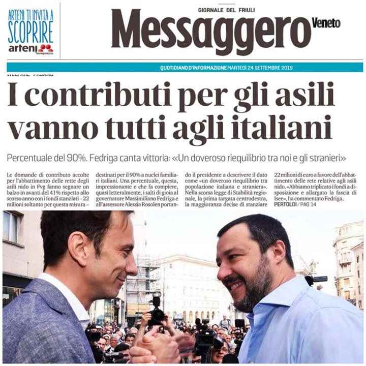 Dove governa la Lega si tutela la famiglia e anche l'appartenenza alla comunità, riequilibrando a favore delle famiglie italiane.