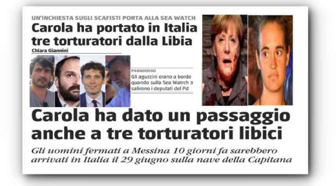 Carola Rackete, tra i quaranta clandestini bordo della nave della Ong Sea Watch che ha speronato una motovedetta italiana pur di scaricarli, trasportava tre trafficanti di esseri umani, accusati di torture.