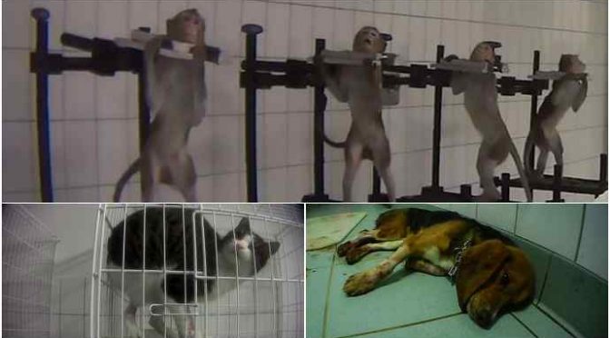 Benvenuti nei campi di concentramento per animali. In Germania, nel LPT Laboratory of Pharmacology and Toxicology, nei pressi di Amburgo, gli animali vengono torturati per testare prodotti: macachi, beagle e gatti.