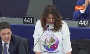 Susanna Ceccardi si è presentata in aula al Parlamento UE con la maglietta della resistenza all’islamizzazione e la scritta #stopterrorism per dire fortemente “No alla Turchia in Europa, ora e sempre”.