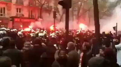 #Parigi, i Vigili del Fuoco conducono, come gladiatori, il corteo per fare avanzare la protesta anti-Governo bloccata dalla polizia anti-sommossa. Da Noi a protestare in piazza invece ci vanno i pesci sociali, tralaltro contro l'opposizione. Povera #Italia Nostra 😢. #RadioSavana pic.twitter.com/RoneqG5Isz