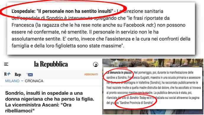#Sondrio "L'episodio di razzismo è stato prima raccontato in piazza da Francesca Gugiatti, durante la manifestazione delle sardine".