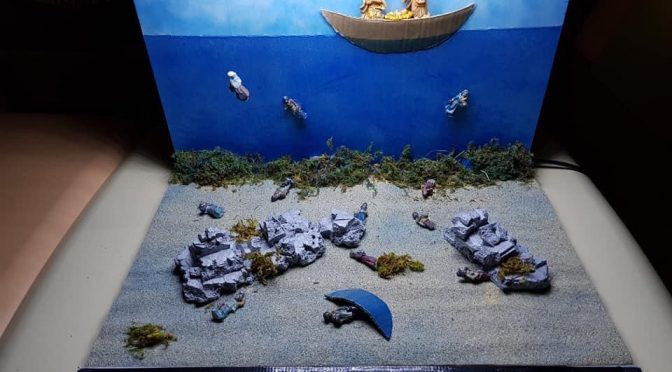 Giuseppe, Maria e il Bambinello galleggiano, infatti, su un barchino. Ormai un must per gli accoglioni. Ma non basta, nella bizzarra ricostruzione, i tre sono i soli sopravvissuti ad un naufragio. La pastorella, lo scarpino, il panettiere e persino i Re Magi sono tutti affogati.