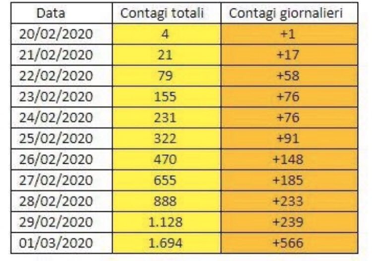 Sono 3.296 i malati per coronavirus in Italia, con un incremento di 590 persone in più rispetto a ieri e 148 i morti, 41 in più. L’epidemia non si ferma, anzi.