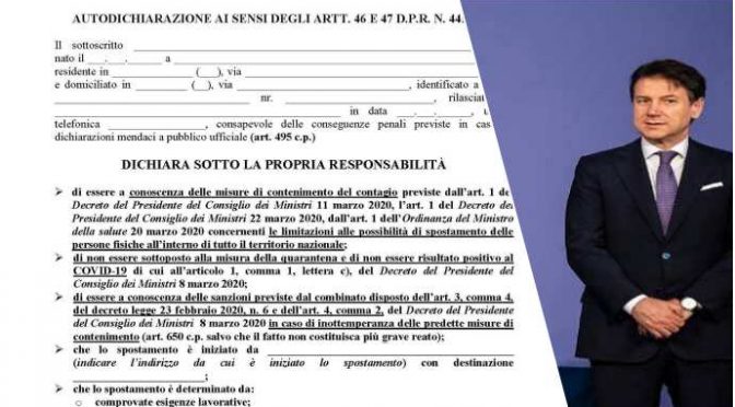 Inoltre devo dichiarare anche l’ora dello spostamento, il motivo, ecc.: ma siamo ancora in un paese democratico? o ci stiamo incamminando verso un regime sudamericano?
